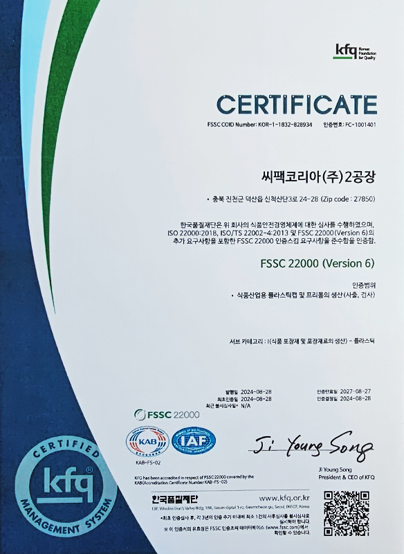 씨팩코리아는 원료가 입고되는 순간부터 최종 제품이 출하되기까지,