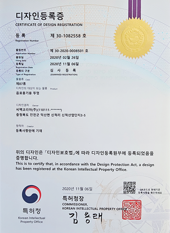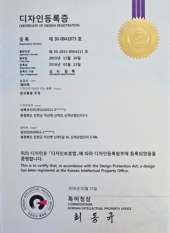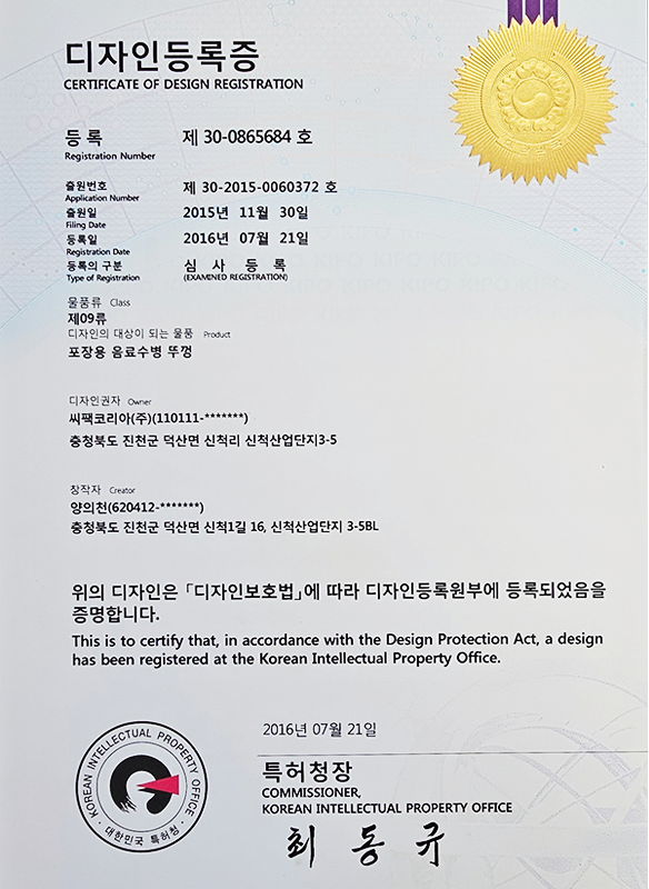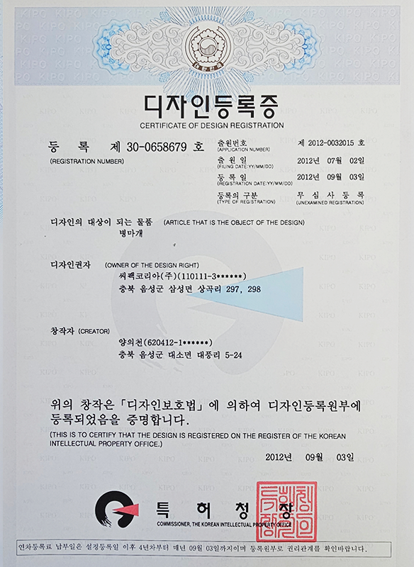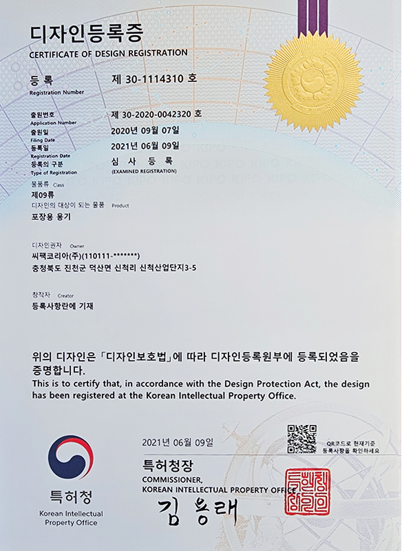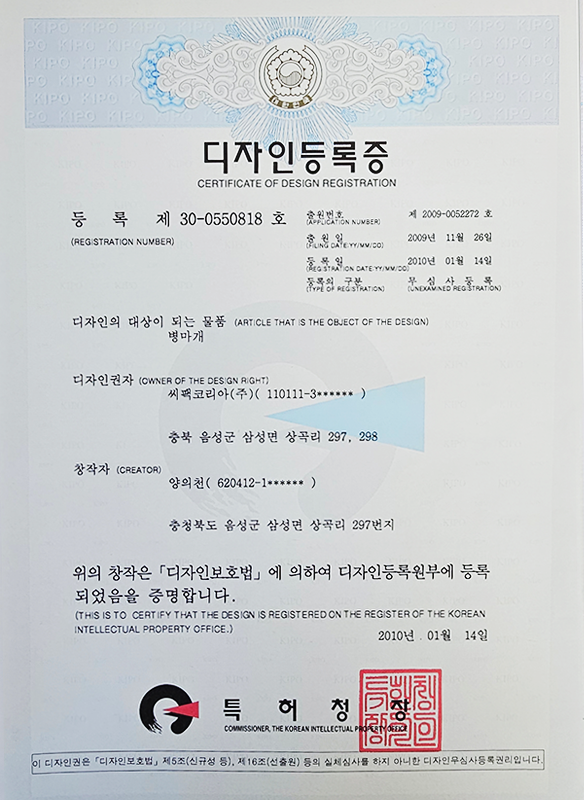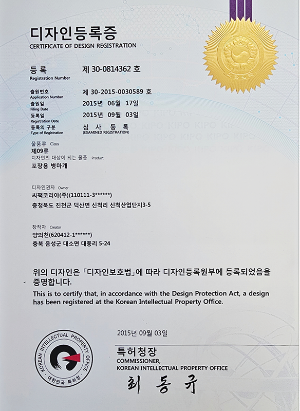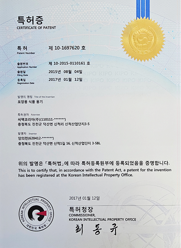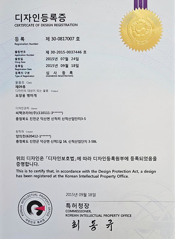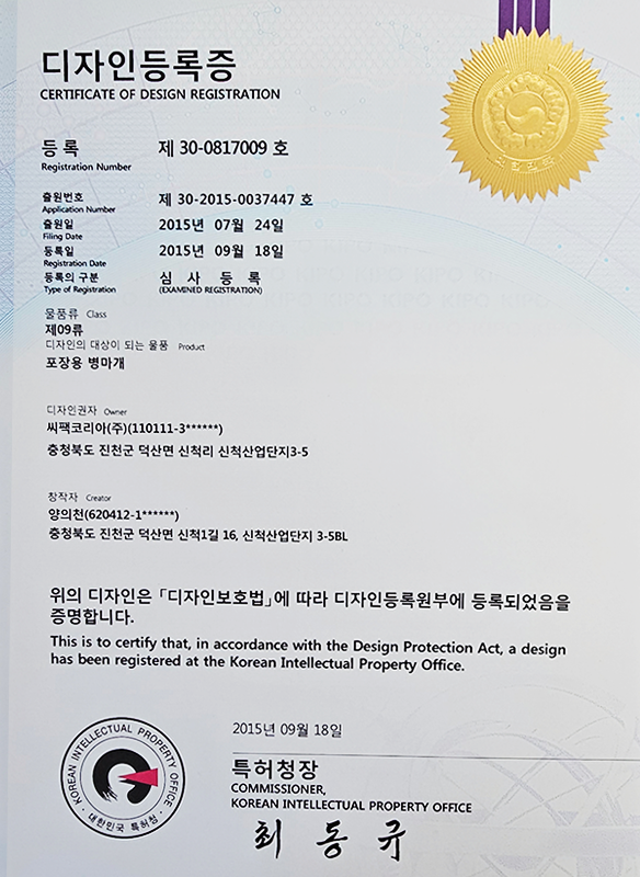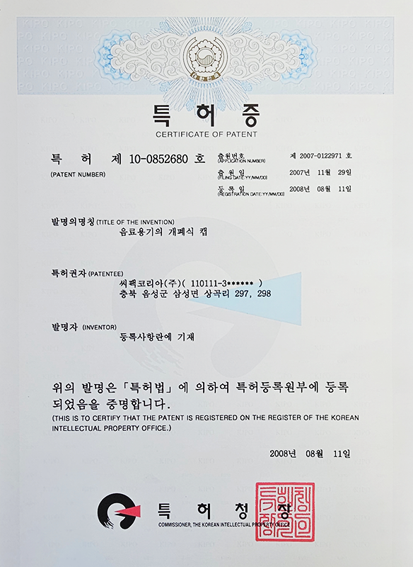 캡 관련 특허 4건, IML컵 관련 특허 2건을 보유하며 독자적인 기술 경쟁력을 확보